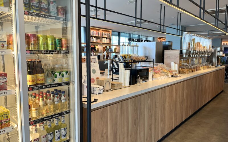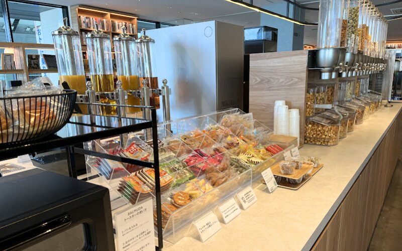 店内には色んな種類の飲料あり(飲み放題)、軽食もありで、何を飲もうかと迷う。