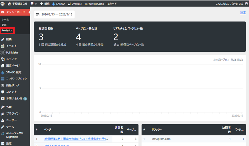 アクセス解析を見る場所