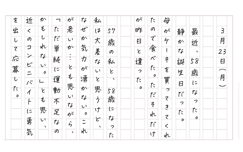 それでも何とか日記は続けていきたいので、目先を変えて縦書き日記にしてみた。