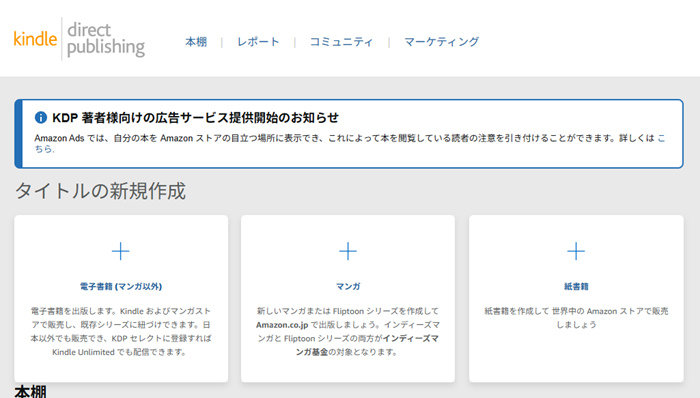 - kindleダイレクト・パブリッシングにアカウント登録し、作った原稿データを電子書籍(マンガ以外)に登録していく。